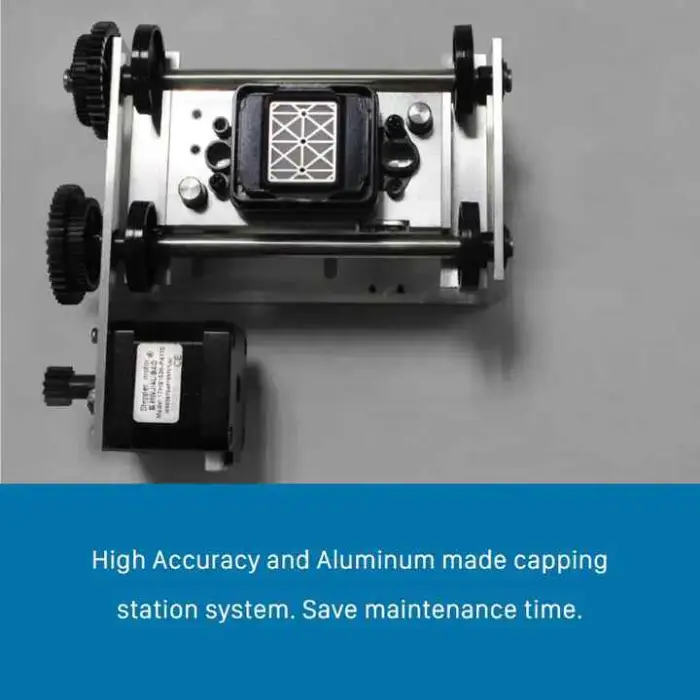 The machine uses a DX8 print head for high-quality printing.