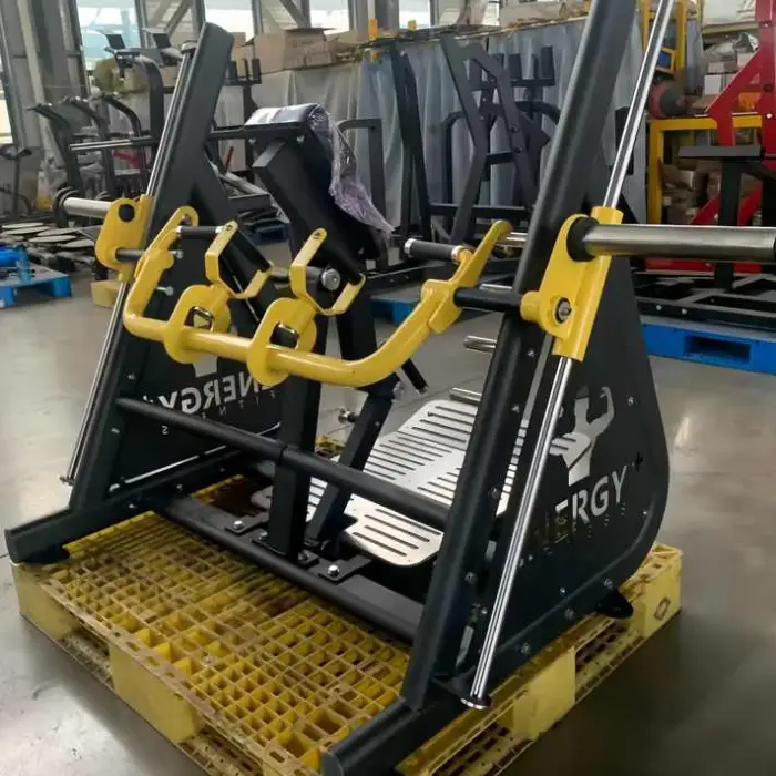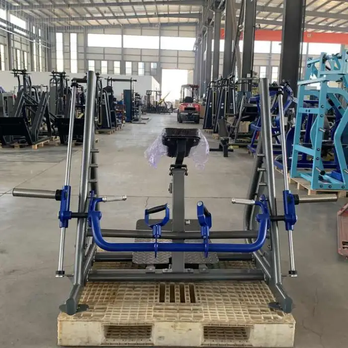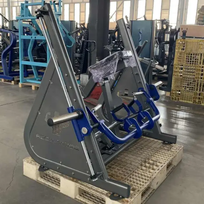 The machine features a plate-loaded design that allows for adjustable resistance, catering to various fitness levels and preferences.
