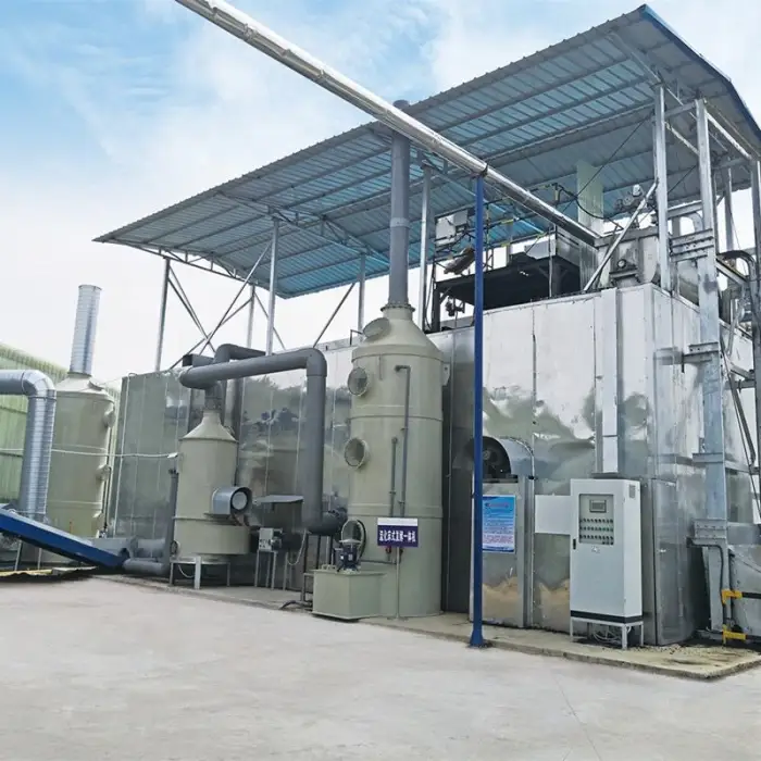 The heat exchange processing system optimizes the fermentation process by maintaining the appropriate temperature for efficient decomposition of waste.