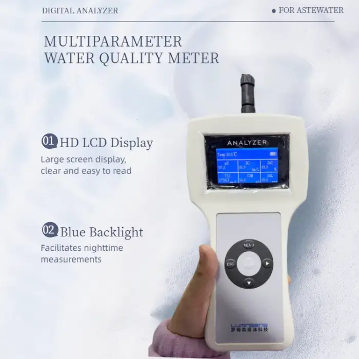 The device can measure pH, temperature, ORP (Oxidation-Reduction Potential), salinity, ammonium, dissolved oxygen, electrical conductivity, and turbidity.