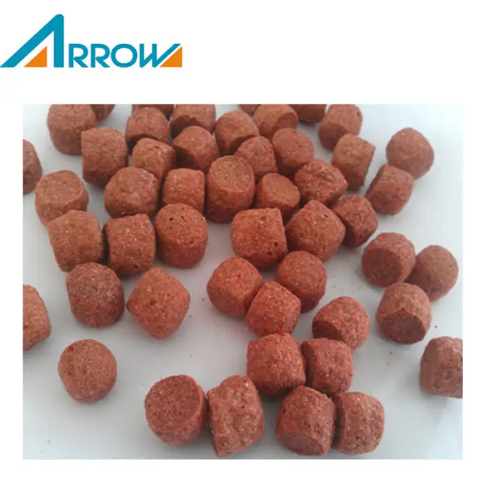 The machine can process various feed materials, including grains, fishmeal, and other ingredients suitable for aquatic feed production.