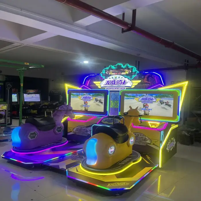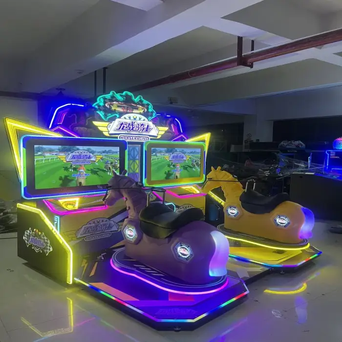 The Arcade Racing Simulator Horse Swing Machine is suitable for kids aged 3 years and up.