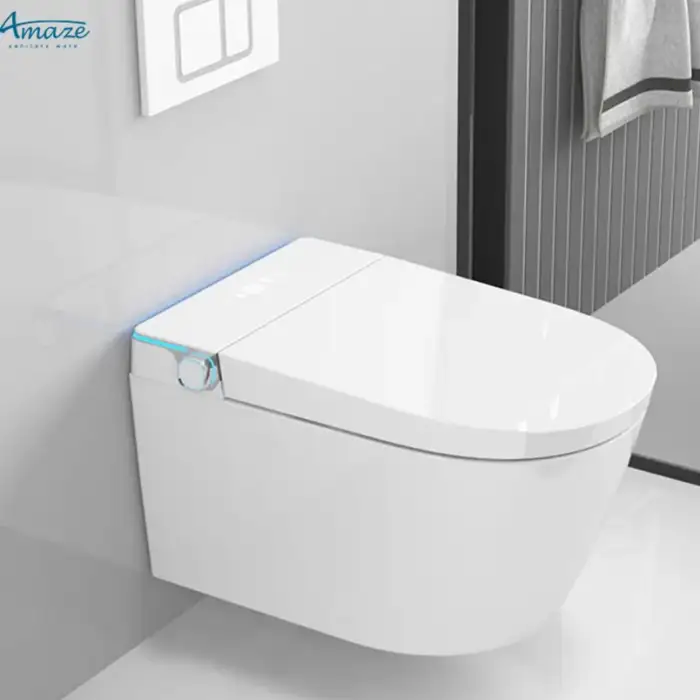 The intelligent bidet function includes adjustable water pressure and temperature, providing a thorough and hygienic cleaning experience after each use.