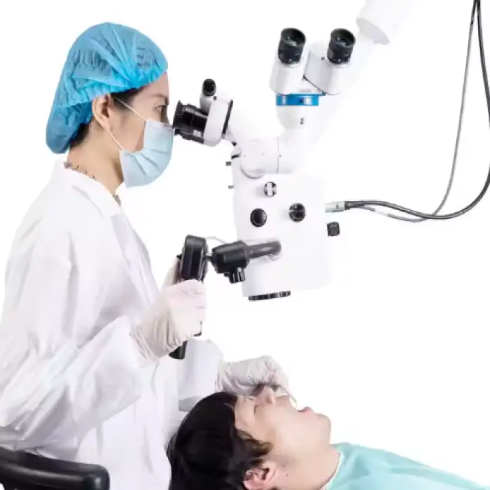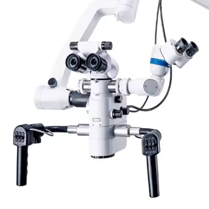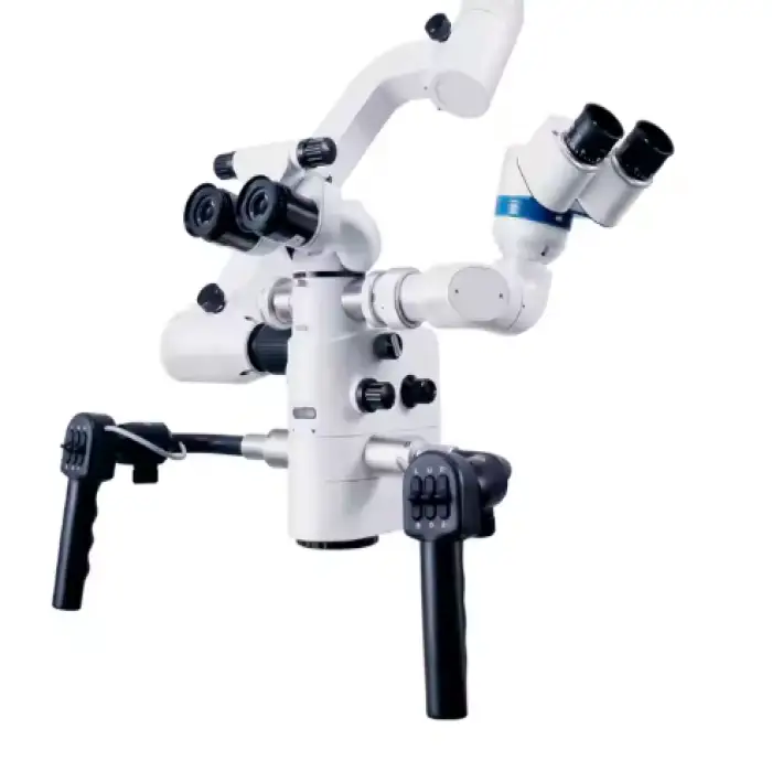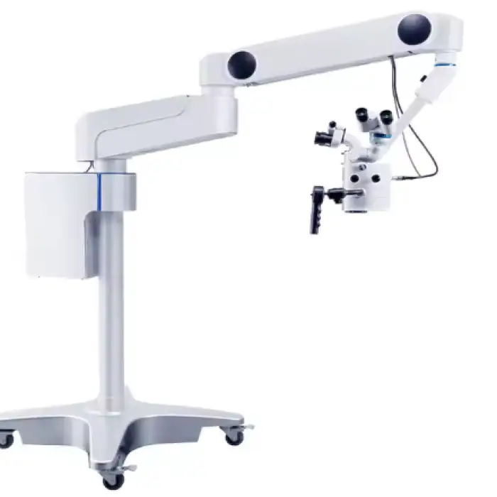 The microscope features a coaxial LED light source for bright and even lighting during procedures.