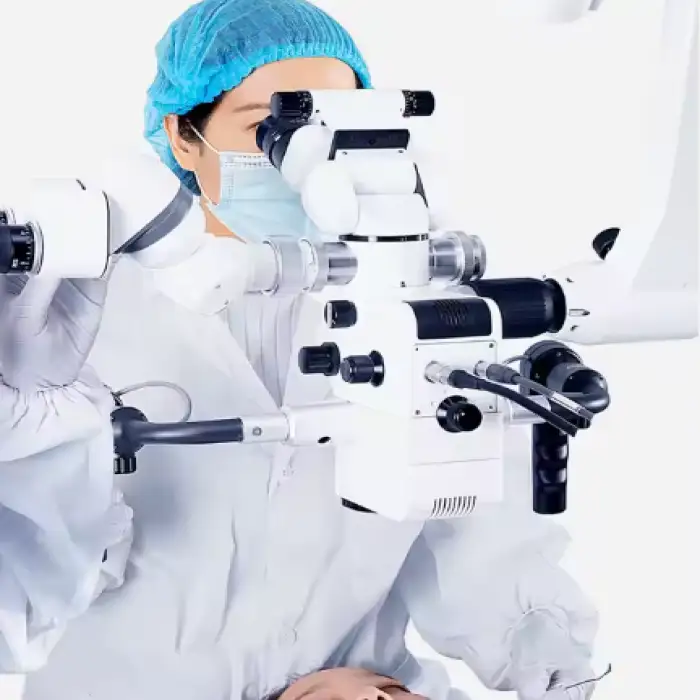 The ASOM-5E Neurosurgery Ent Microscope offers a magnification range from 1.8x to 21x.