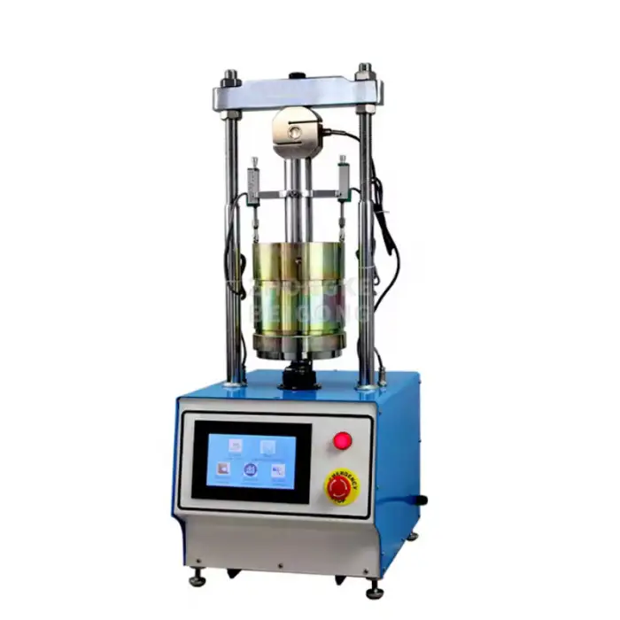 The machine is designed for testing soil and various materials used in civil engineering applications.