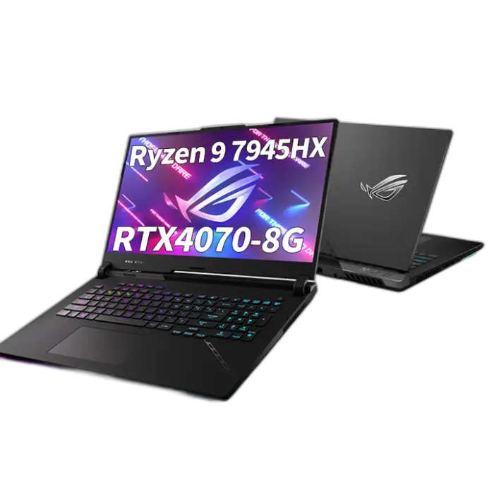 AMD Ryzen 9-7845HX processor (up to 5.2 GHz, 12 cores), NVIDIA GeForce RTX 4070 GPU, 17.3" 2.5K (2560x1440) display with 240Hz refresh, 16GB DDR5 memory, SSD storage (capacity varies by configuration), Windows 11, 90WHr battery, advanced cooling with 2 dust‑proof fans + 4 air outlets, customizable RGB keyboard, weight ~5.0 kg.