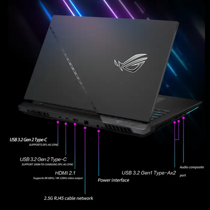 Port and connectivity options can vary by region/configuration. Typical ROG Strix models offer a mixture of USB-A, USB-C, HDMI, audio jack, and Ethernet—but you should check the exact product page or spec sheet to confirm the ports included on the specific SKU you plan to buy.
