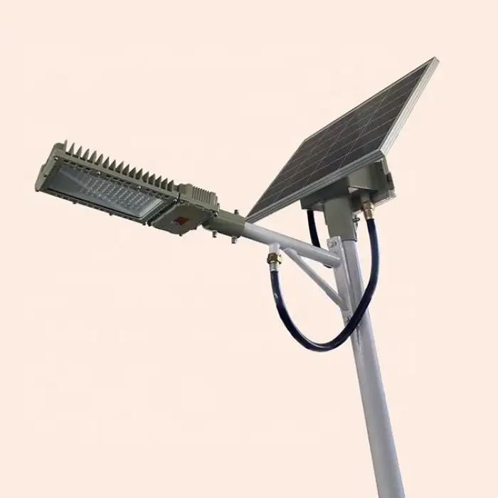 The Atex Lamp is powered by an external solar panel, making it an eco-friendly and energy-efficient solution for outdoor lighting.
