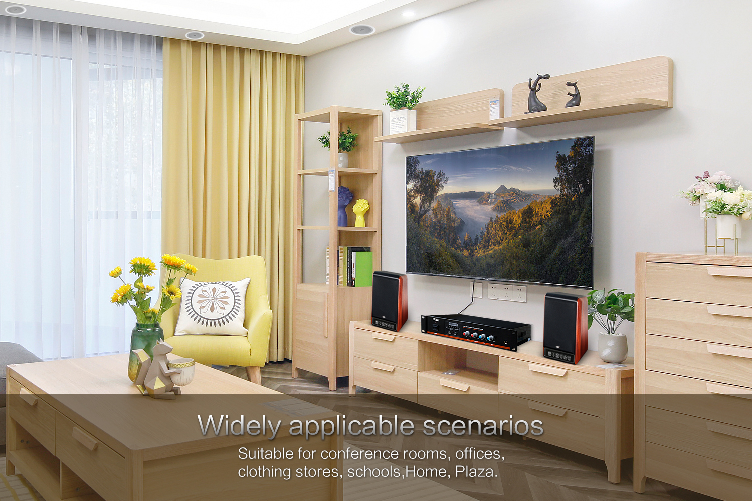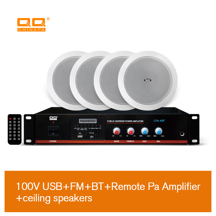 The package includes the active Bluetooth amplifier and four ceiling speakers, packaged in a box/carton. For exact accessory list (cables, screws, manuals), check the seller's product listing or contact the supplier.