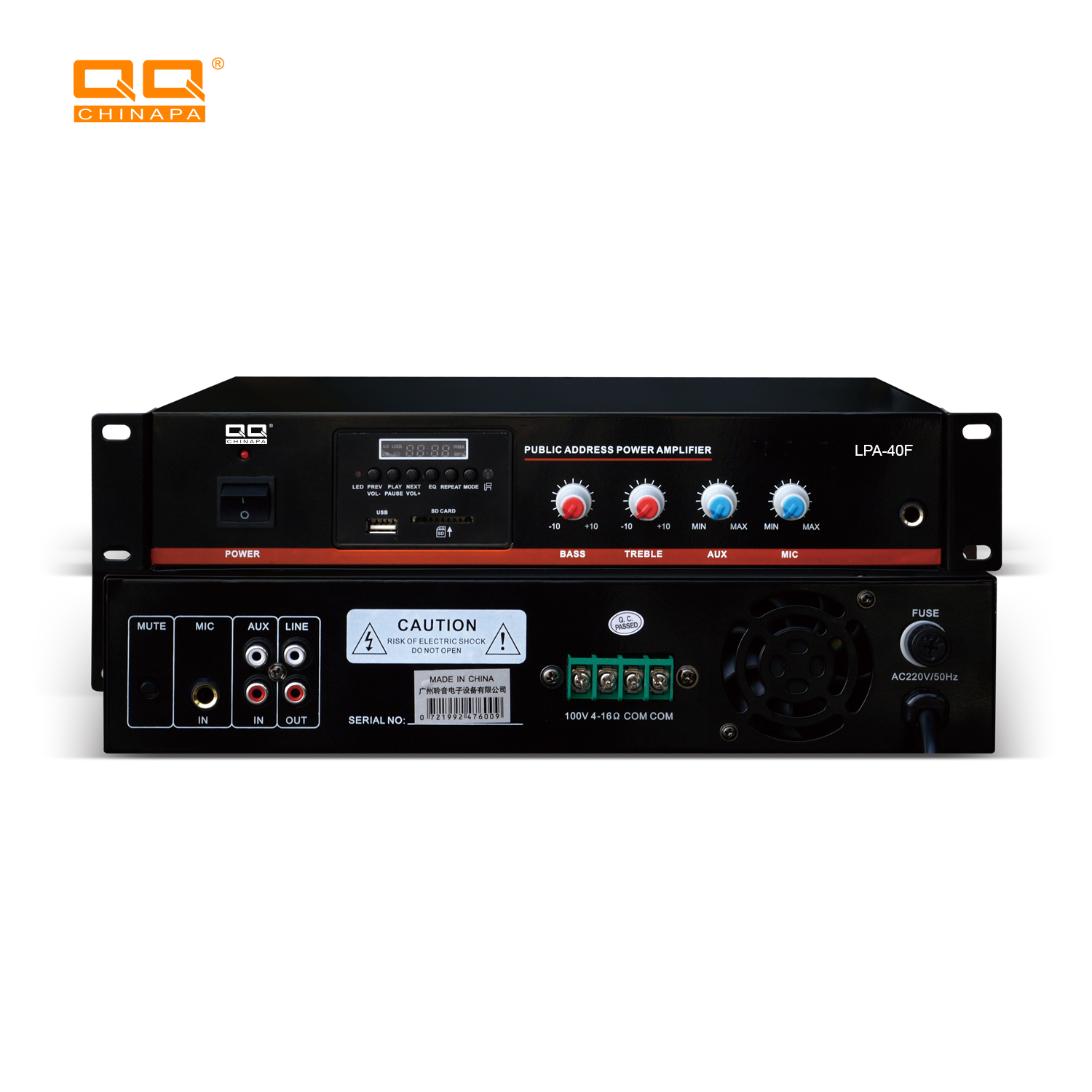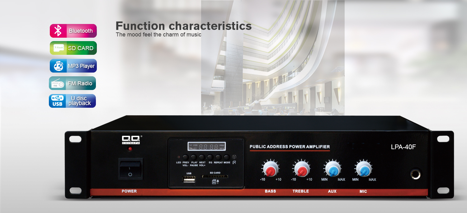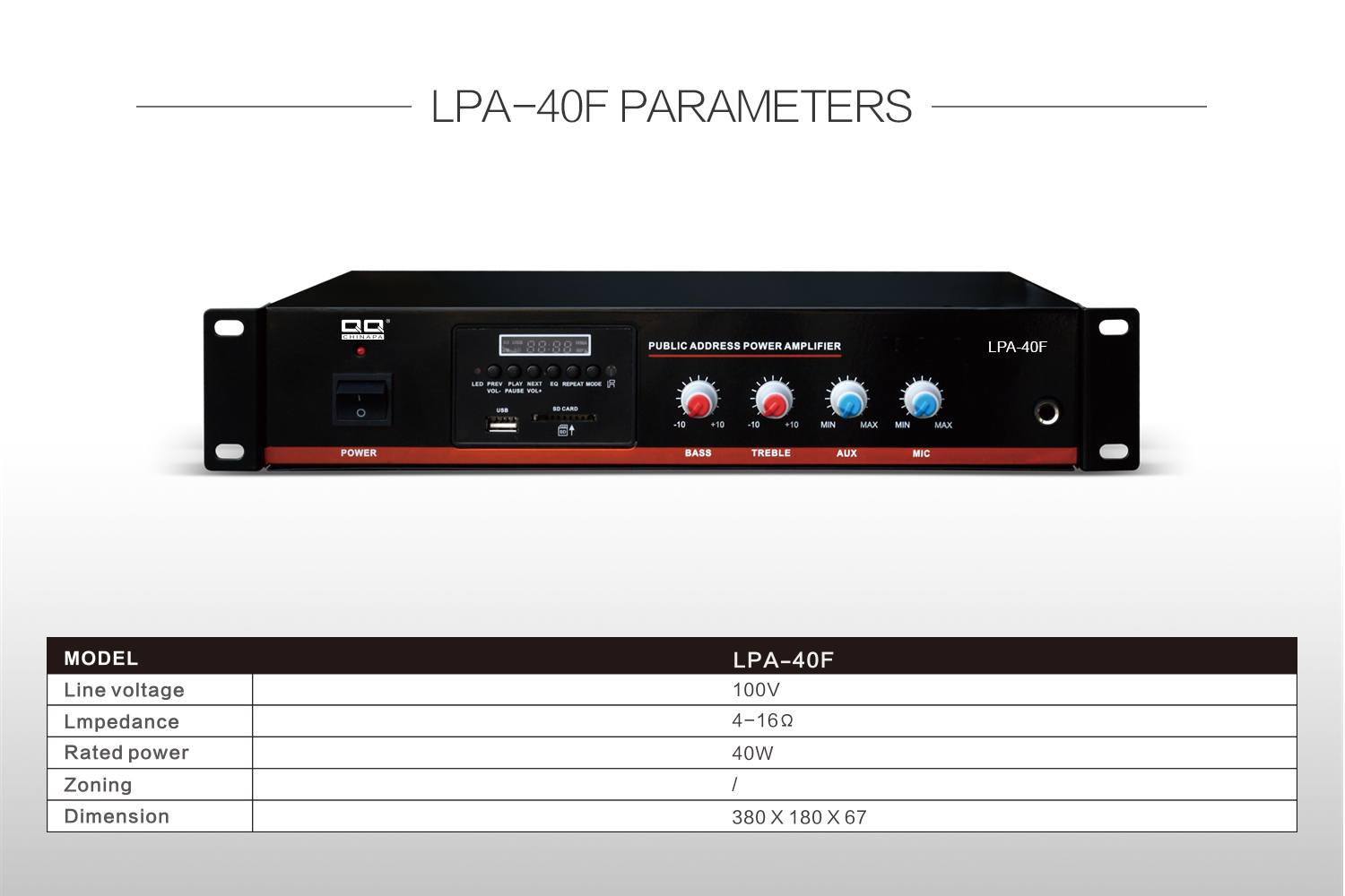 The amplifier is rated at 40W. This refers to the unit's rated power output used to drive the connected speakers.