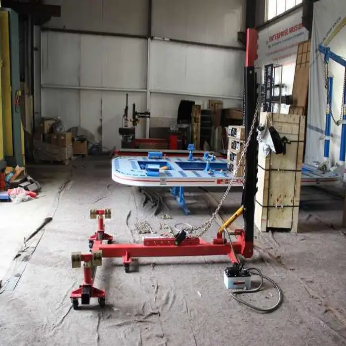 This machine is ideal for removing dents, straightening car frames, and can be used for various auto body repairs.