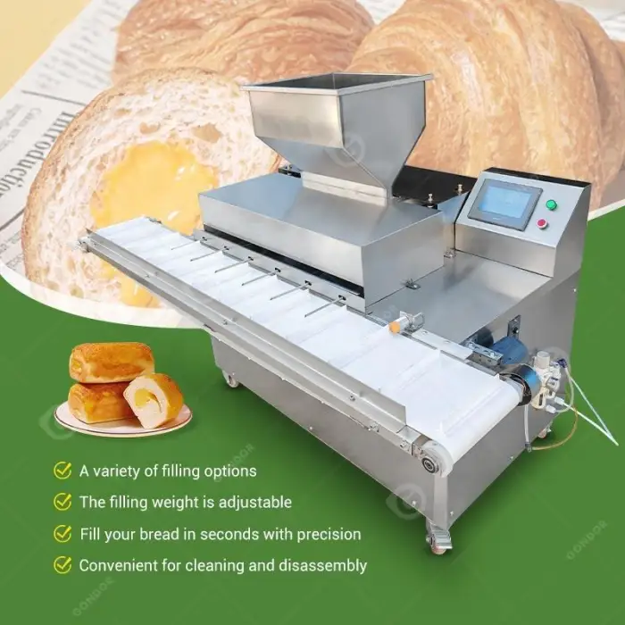 The machine can inject filling at a maximum frequency of 15 times per minute, making it highly efficient for busy bakeries.