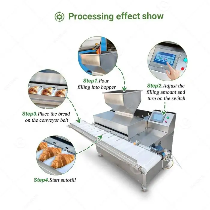 The Auto Jam Bread Injector can fill donuts, croissants, cream puffs, and other similar baked goods with various fillings such as jam, cream, cheese, and chocolate.