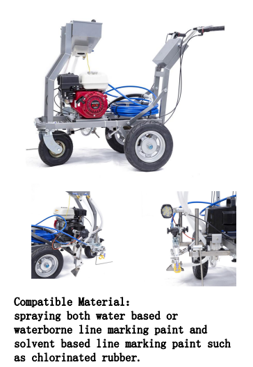 The Automatic Airless Line Striper PT-6090AT is designed for efficiently applying paint and marking lines on various surfaces such as roads, parking lots, and sports fields.
