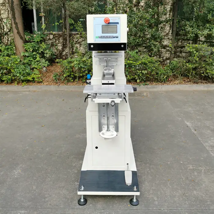 The machine can print between 100 to 300 pieces per hour, making it suitable for both small and large production runs.