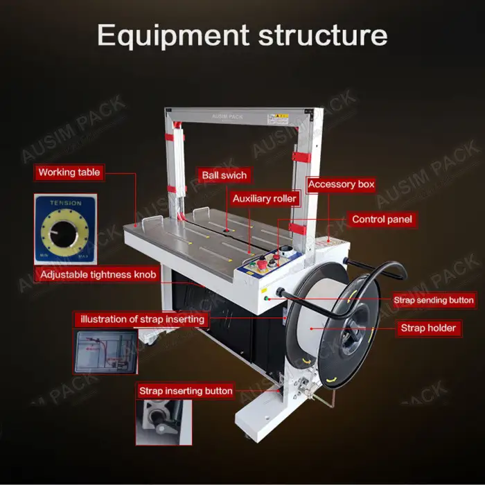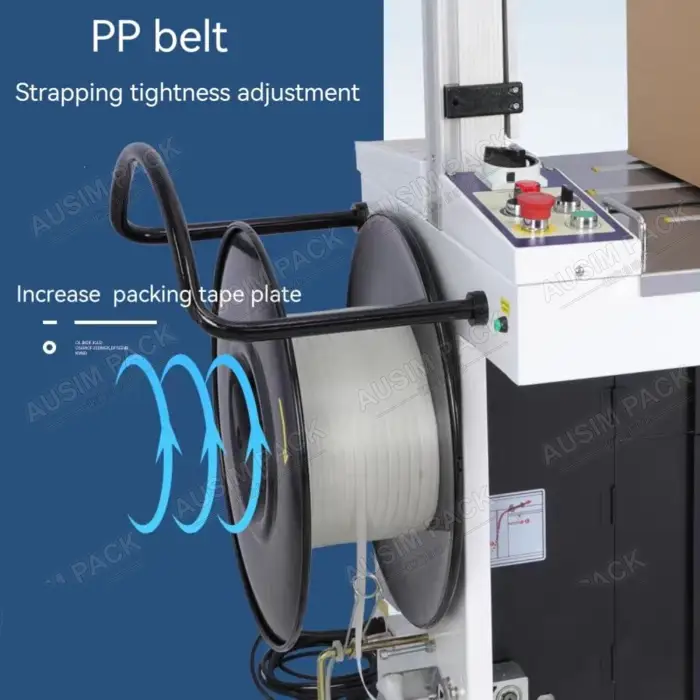 The automatic operation allows for quick and consistent strapping, significantly reducing manual labor and increasing productivity.