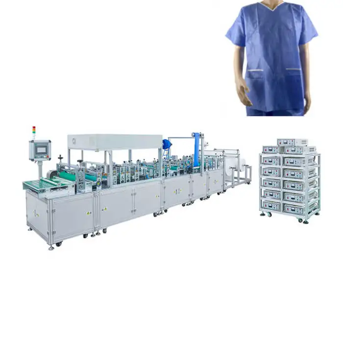 The machine is designed to produce disposable medical clothing, including scrubs, isolation gowns, and disposable slippers.