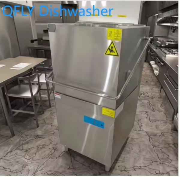 The Automatic Commercial Kitchen Dishwasher has a compact design suitable for busy commercial kitchens, but specific capacity can vary based on the size of the dishes being washed.