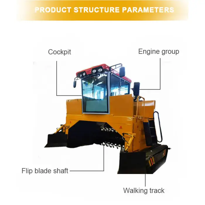 The primary function of the Automatic Compost Turner Machine is to efficiently mix and turn organic waste, such as cow dung and mushroom compost, into high-quality compost.