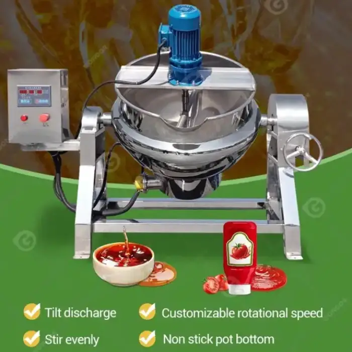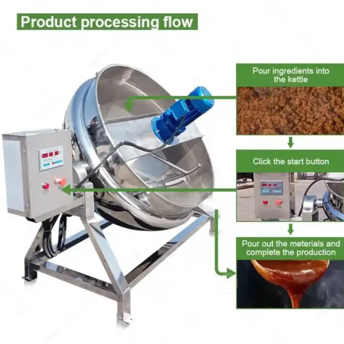 This kettle cooker is widely used in food processing for making candy, dairy products, alcohol, pastries, preserves, beverages, and more, as well as in large restaurants or canteens for cooking soups, vegetables, stewing meat, and making porridge.