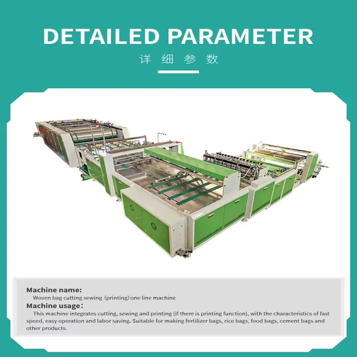 The machine is designed to manufacture PP woven bags, plastic bags, and can accommodate custom printing on bags for various applications.
