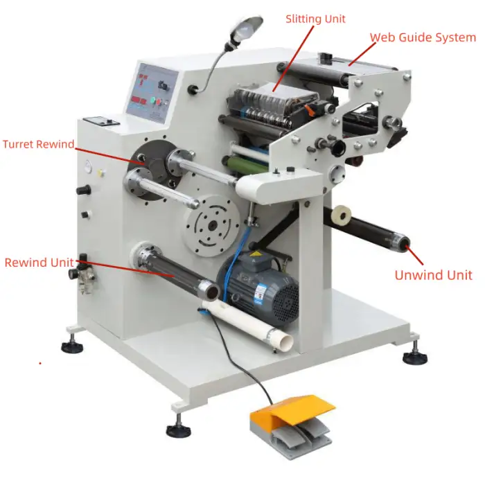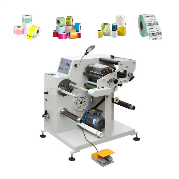The machine can produce various types of labels, including thermal and adhesive labels.