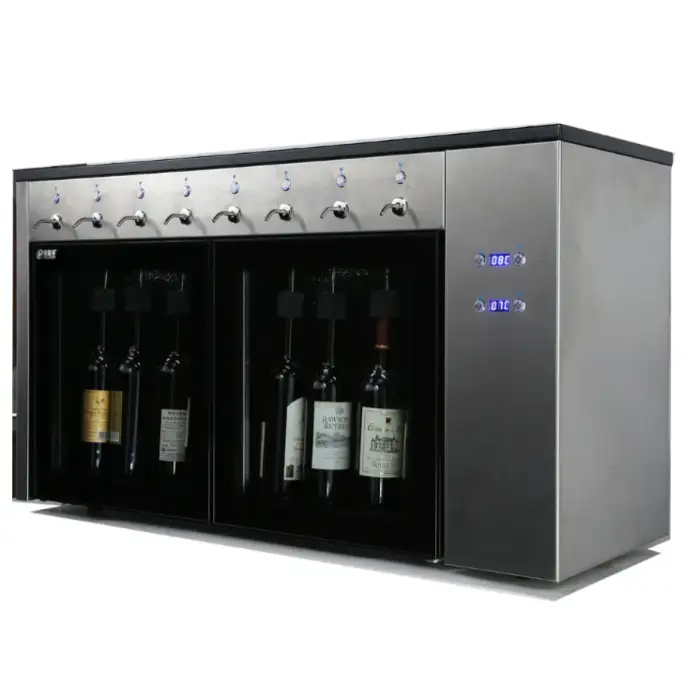 The Automatic Electric Cooler Wine Dispenser can hold up to 6 bottles of wine.