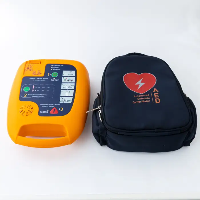 The AED offers multilingual support, allowing users to switch between two languages for ease of use.