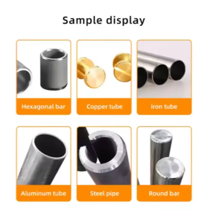 This machine can process various materials including iron, carbon, and stainless steel.