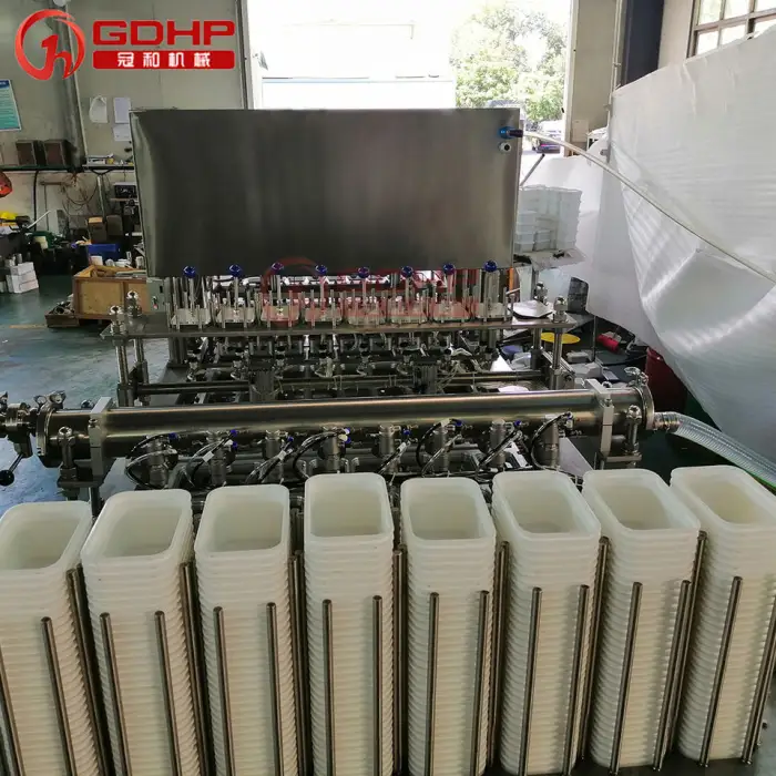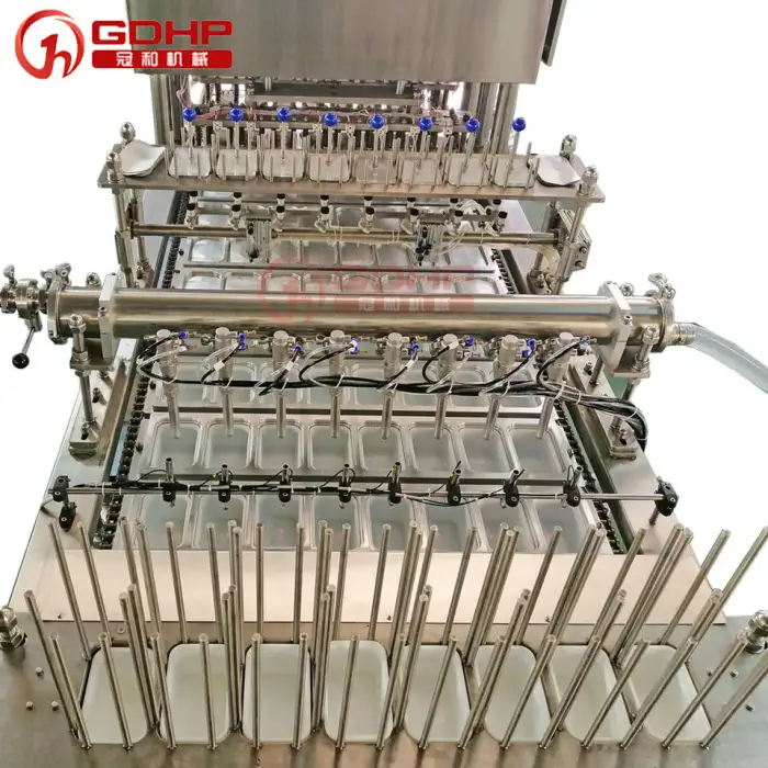 The machine can fill a variety of products including butter, cream, ice cream, liquid soap, gel, oil, alcohol, juice, spirit, viscous liquids, honey, paste, ketchup, shampoo, liquor, yogurt, glue, and other viscous products.