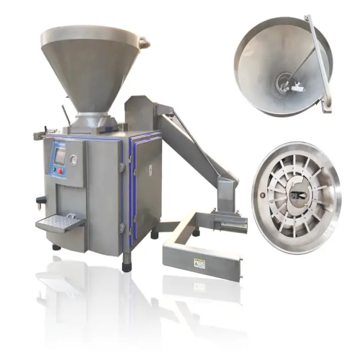 This fully automatic machine is designed for continuous production of German frankfurter-style sausages and other processed meat products, and it is also suitable for producing pet food sausages (dog food) with consistent shape and weight.