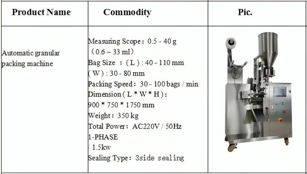 The Automatic Granular Packing Machine can pack up to 100 tea bags per minute, ensuring maximum output.