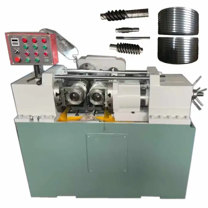 The machine is capable of processing various metal threads, including those for bolts, screws, and threaded rods.