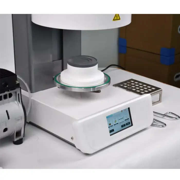 The furnace is ideal for pressing porcelain for dental crowns, creating dental bridges, fabricating porcelain veneers, and producing custom dental prosthetics.