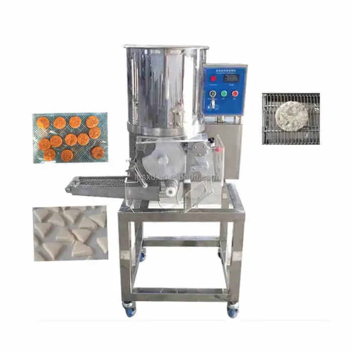 The machine is designed primarily to form meat patties such as hamburger and other ground-meat patties. It can also form a variety of shaped patties from minced mixtures. For pastry-encased Jamaican patties (dough + filling + sealing), additional dough-forming/sealing equipment may be required—check with the supplier for integrated solutions or custom tooling.