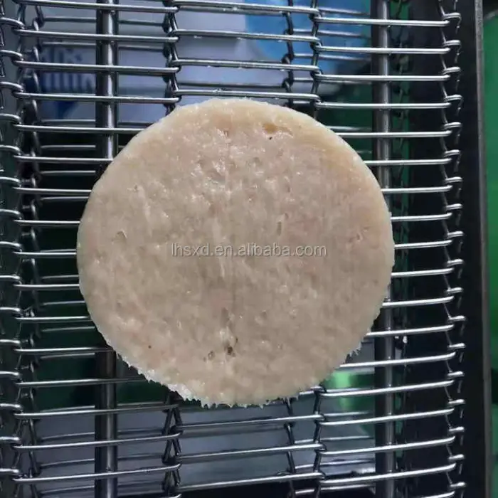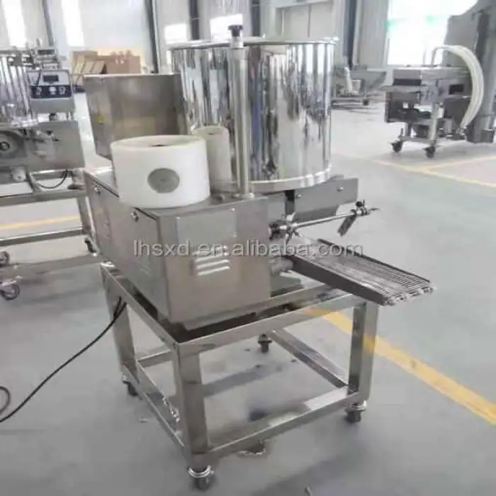 Routine maintenance includes daily cleaning of food-contact areas, periodic inspection of belts and fasteners, lubrication of bearings per the manufacturer's schedule, and replacing wear parts (belts, seals, forming plates) as needed. Keep a regular maintenance log and follow the supplier's recommended service intervals.