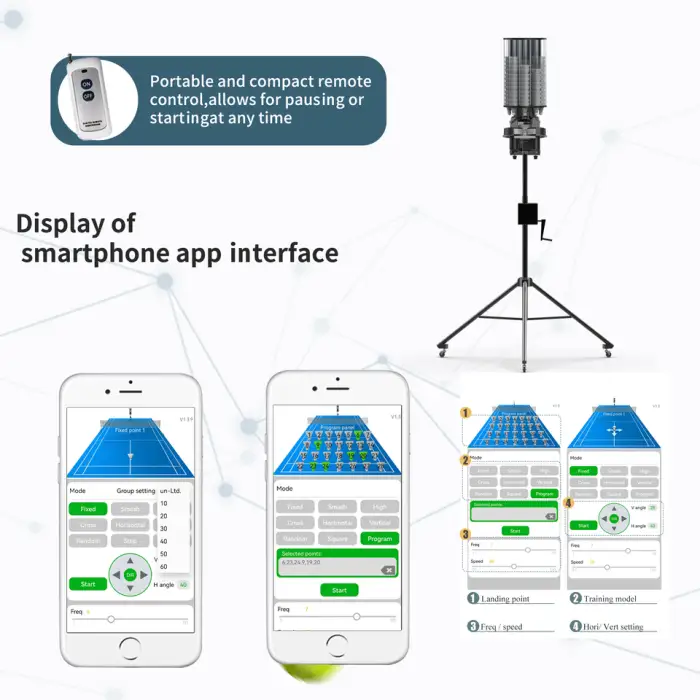 The serve frequency can be set between 1.2 to 5 seconds per ball, depending on the settings in the associated app.