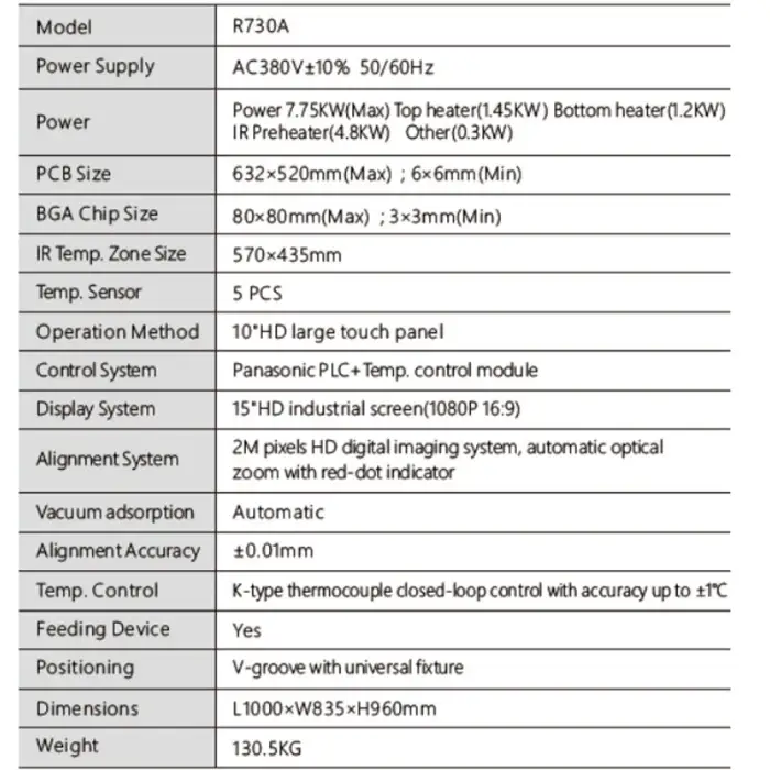 The ZM-R730A can accommodate a maximum PCB size of 632 x 520 mm.