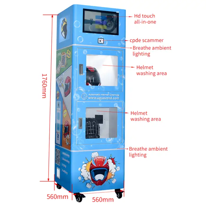 The Automatic Motorbike Double Helmet Dry Cleaner is designed to clean and disinfect motorcycle helmets using steam and UV light, ensuring they are safe and hygienic for users.