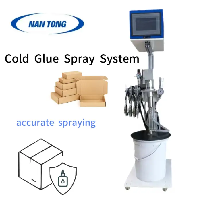 The machine uses cold glue, which is ideal for laminating and pasting applications.