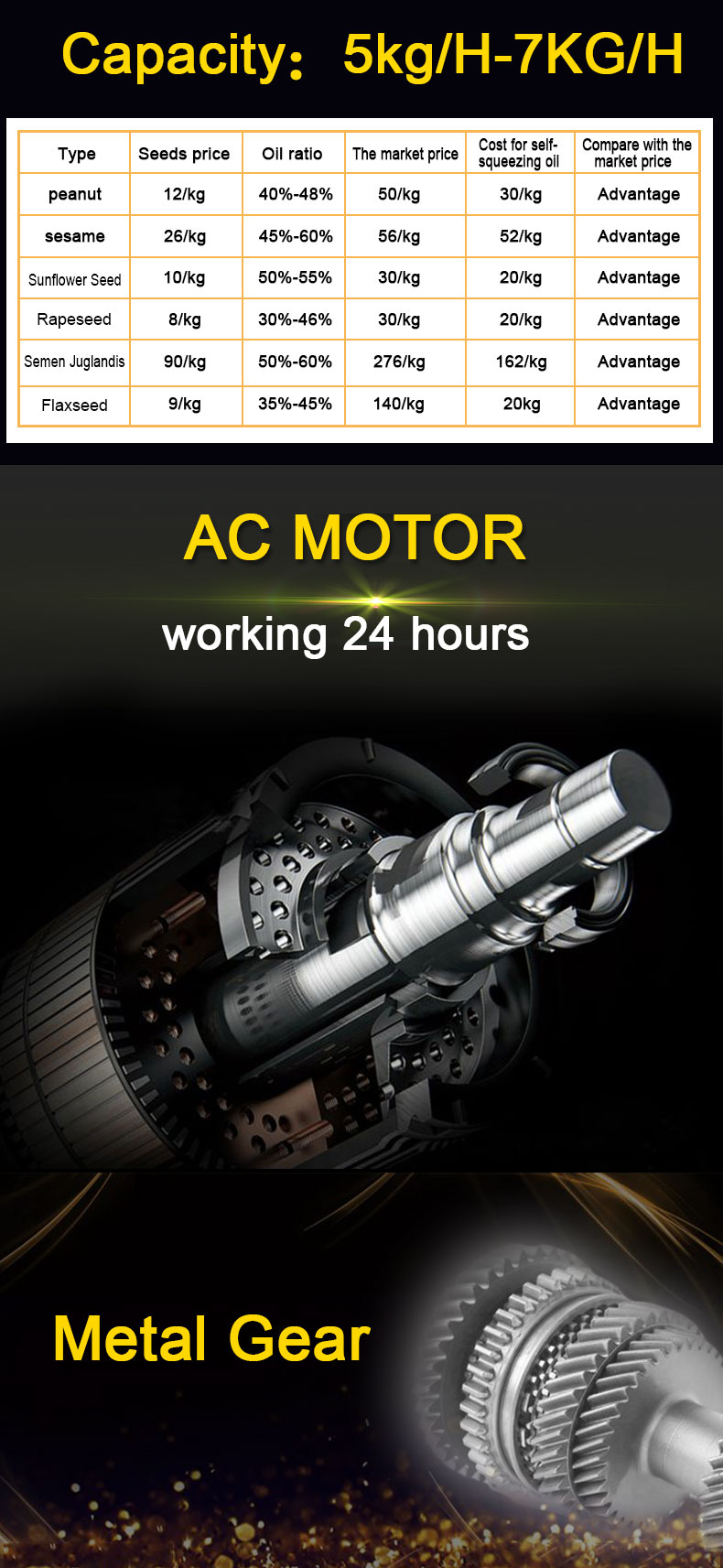 The oil press operates with minimal energy consumption, helping to reduce electricity costs while ensuring efficient performance.