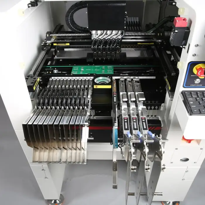 With high speed and accuracy, along with features like automatic nozzle change and multiple feeders, it streamlines SMT production, allowing for higher output.