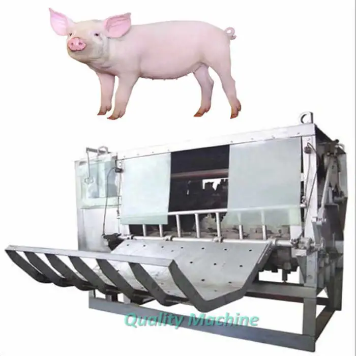The machine has a capacity of up to 350 pigs per hour, making it highly efficient for livestock processing.