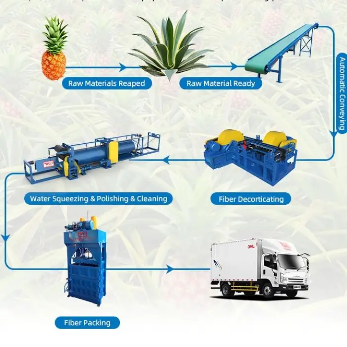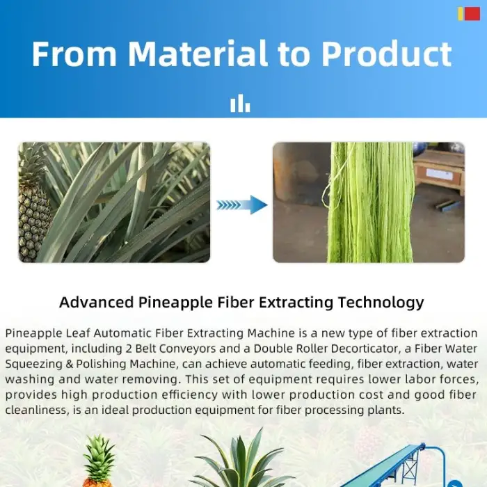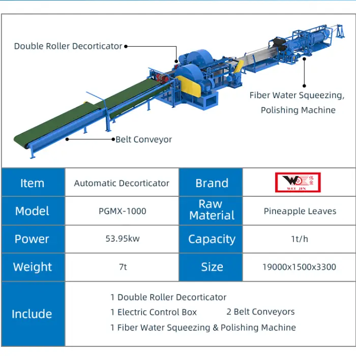 The PGMX-1000 is designed to efficiently extract fiber from various types of pineapple leaves.