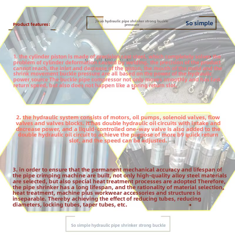 Key features include automatic operation, versatility for multiple materials, fast contracting cycle, high shrinking capacity, and durable components.