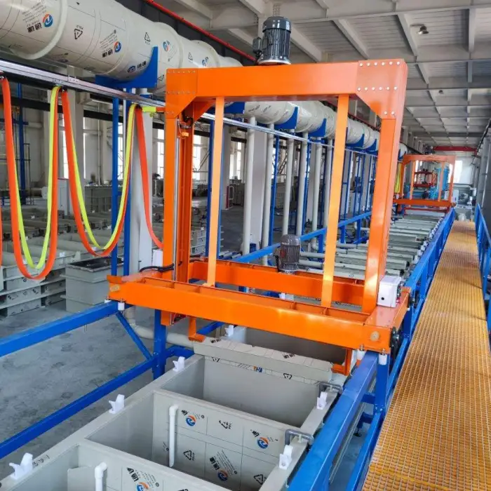 The Automatic Plating Line can apply various coatings, including galvanizing, copper plating, nickel plating, and gold plating.