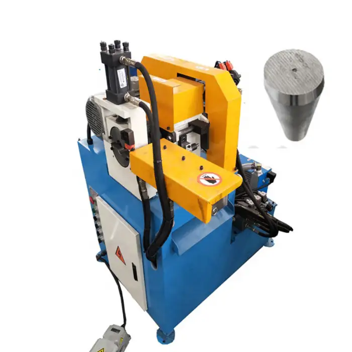 The machine features an automatic feeding mechanism, streamlining the chamfering process.