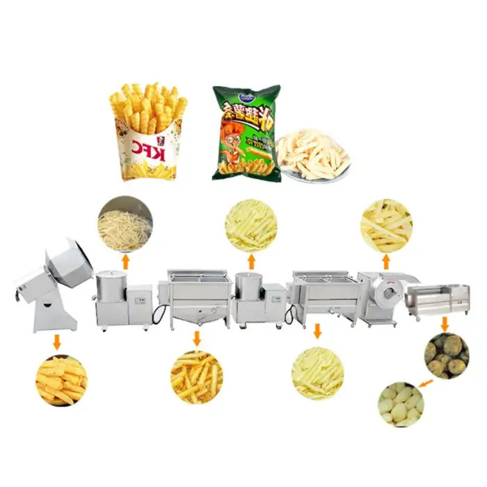 The production line is designed to handle large-scale production, with specific capacity depending on the model chosen. It can efficiently process several hundred kilograms of potatoes per hour.