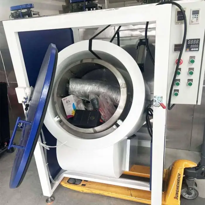 It is particularly useful in industries such as automotive, electronics, and any production line requiring small part coating.